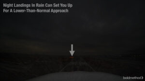 夜間の雨の中での着陸は、ブラックホール効果に似ています。雨の中で着陸すると、実際よりも高い位置にいるように錯覚します。つまり、通常よりも低い位置からのアプローチになり、危険なほど地面に近づいてしまうのです。