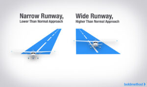 また、狭い滑走路に着陸した場合は、高すぎると錯覚し、通常よりも低いグライドパスを飛んでしまいます。