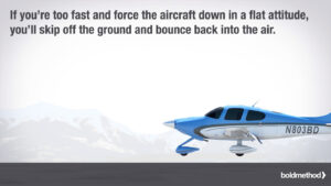 対気速度が速すぎて、平らな姿勢で無理やり着陸してしまうと、飛行機は単に飛ぶのをやめる準備ができていないのです。着陸すると、水の上の石のように滑走路から飛び出して、空中に跳ね返ってしまいます。