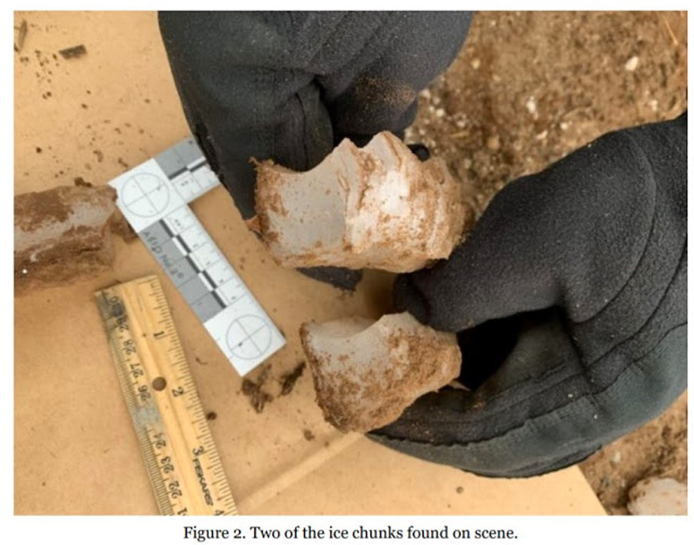 対応した連邦航空局(FAA)の検査官によると、飛行機はADS-Bの最終記録地点から約200ヤード、LBBの南約6マイルの住宅地に衝突したとのことである。衝突後の火災は胴体の大部分と両翼の内側を焼き尽くした。検査官は主翼近くの残骸から多数の氷の塊を発見し、飛行機の前縁表面のいくつかにまだ付着していることを確認した。氷の塊は凹型で、曲線の内側は滑らかな表面(翼の前縁の形と思われる)であった。氷の厚さは1〜2インチであった。