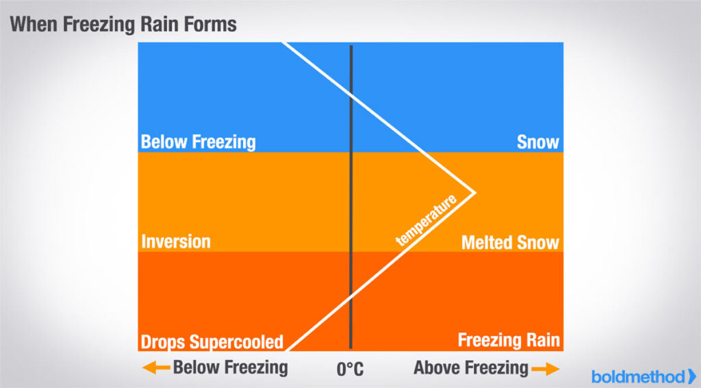FAAによると、「氷雨は、雪片が上空の暖かい層(気温0度以上)に落ち、溶けて雨粒になり、再び氷点下の空気層を通過して地上に到達することで形成される」。この温度逆転はどのように発生するのでしょうか?