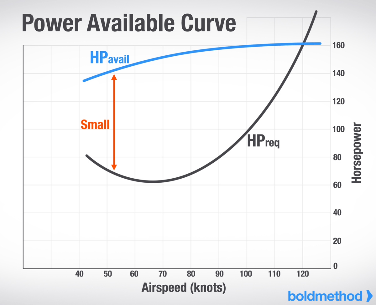 抵抗の増加を克服するためにはパワーが必要です。このトレードオフは、重い機体では上昇に使える予備パワーが少なくなることを意味します。