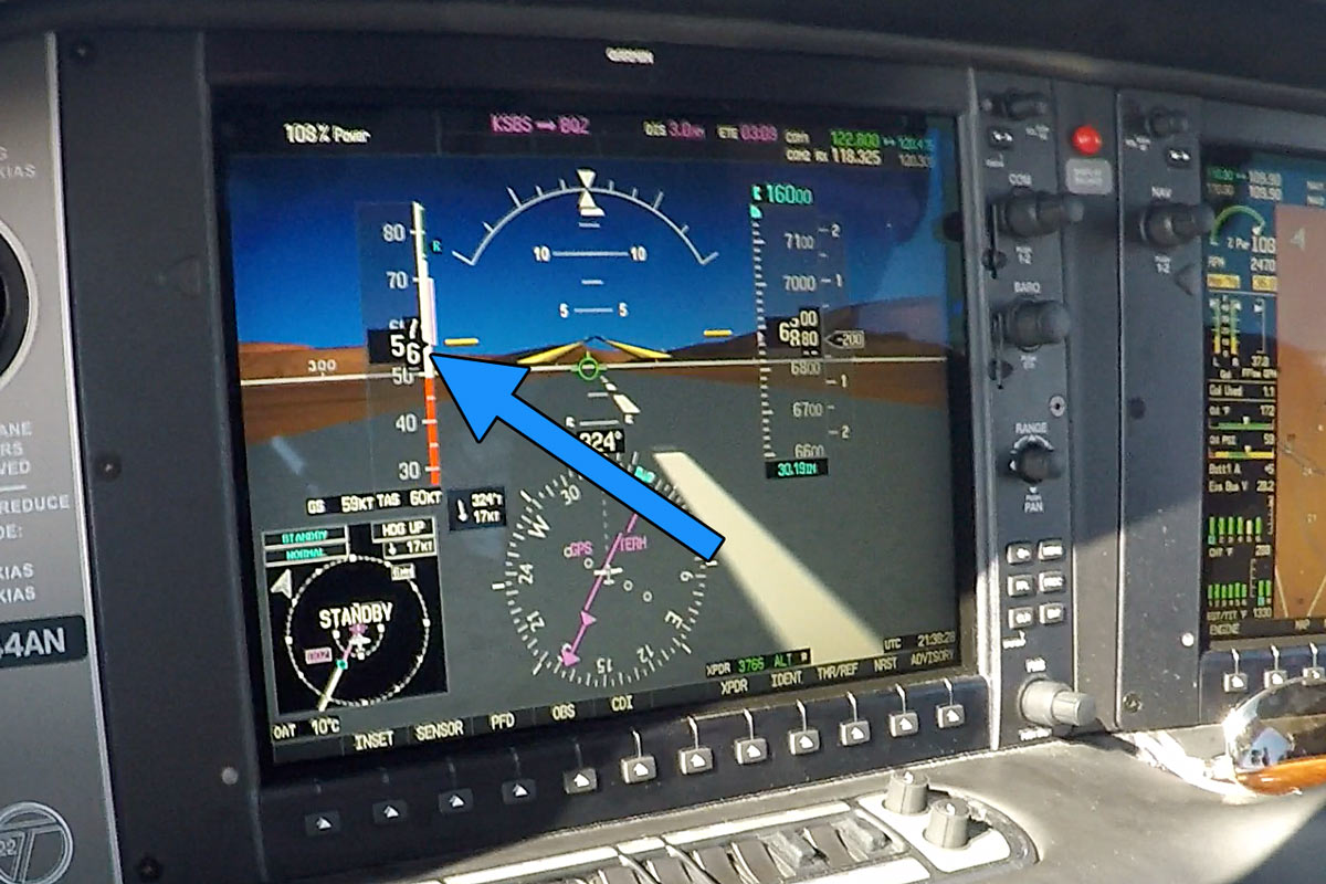 もしあなたがアスペンから離陸するのなら、滑走路の長さは8000フィートと知っているはずです。そこで、同じ離陸のシナリオで、滑走路の50%のところで56ノットを目標速度にすると、”4 “の標識に着くまでに56ノットを達成する必要があることが分かります。