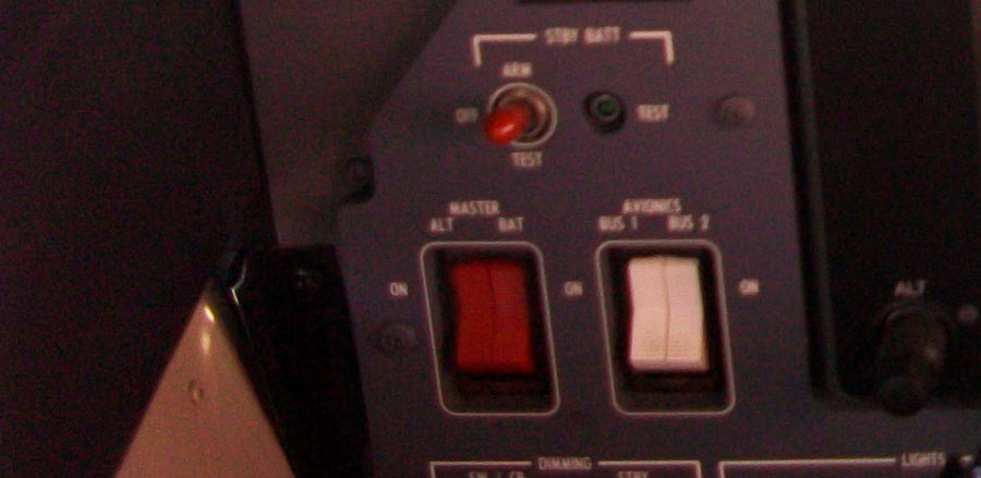 スタンバイ・バッテリーとマスター・スイッチをオフにすることで、機内の全ての電源を遮断します。