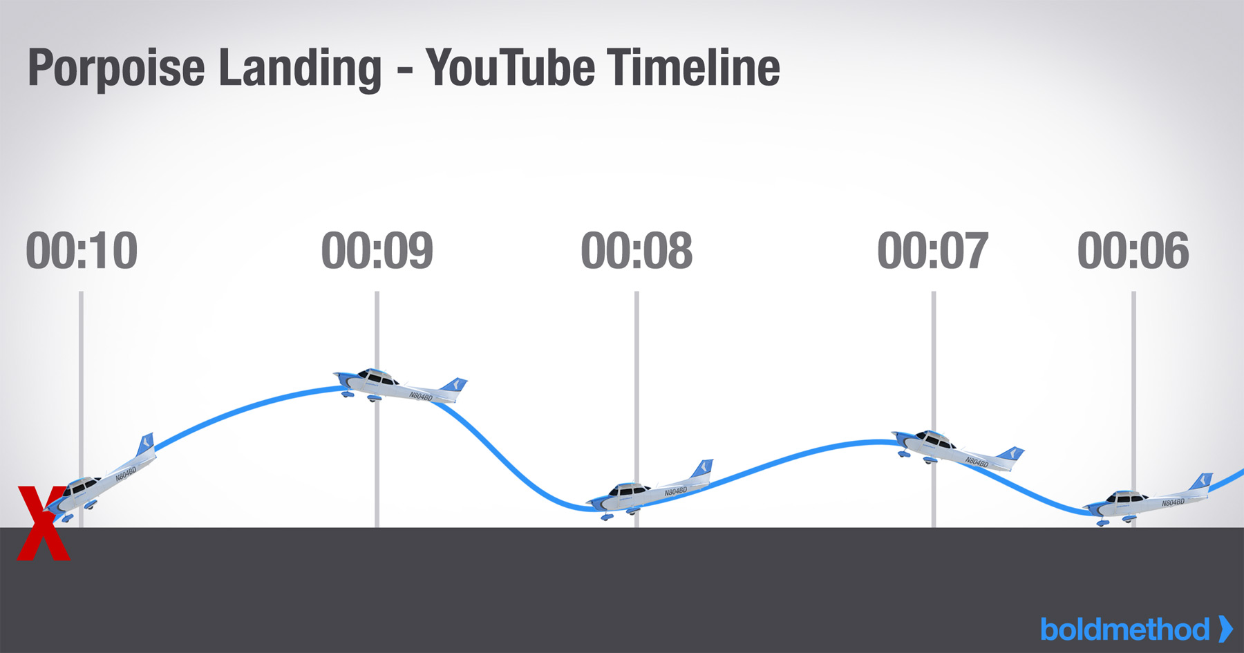 フレアをまったくしなかったとしよう。何もしなかったり、反応が極端に遅かったりすると、最初にノーズホイールにタッチダウンする可能性が高い。もし空中に跳ね返ったとしても(その可能性は高い)、無理に飛行機を滑走路に戻してはいけない。ポーポイズやプロップの衝突、ノーズホイールの倒壊を防ぐため、即座にゴーアラウンドを行うこと。