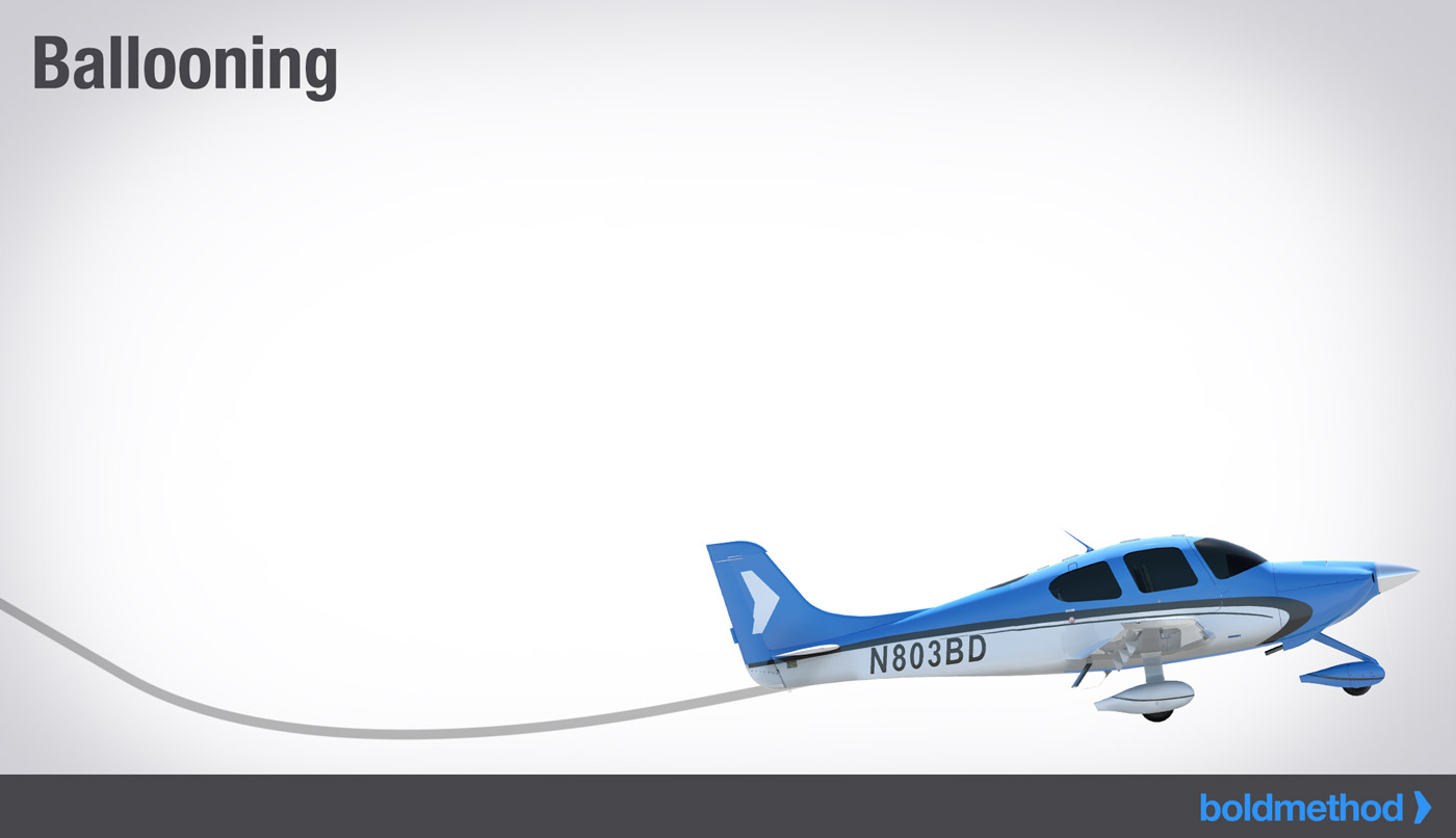 では、どうすればいいのか?バルーニングが小さい場合は、パワーを少し上げて沈下速度を下げ、ピッチ姿勢を保ち、滑走路にタッチダウンします。しかし、バルーニングが大きい場合は、フルパワーを加えてゴーアラウンドする。大きなバルーニングを修正するのは難しいので、単にゴーアラウンドして再挑戦する方が安全です。