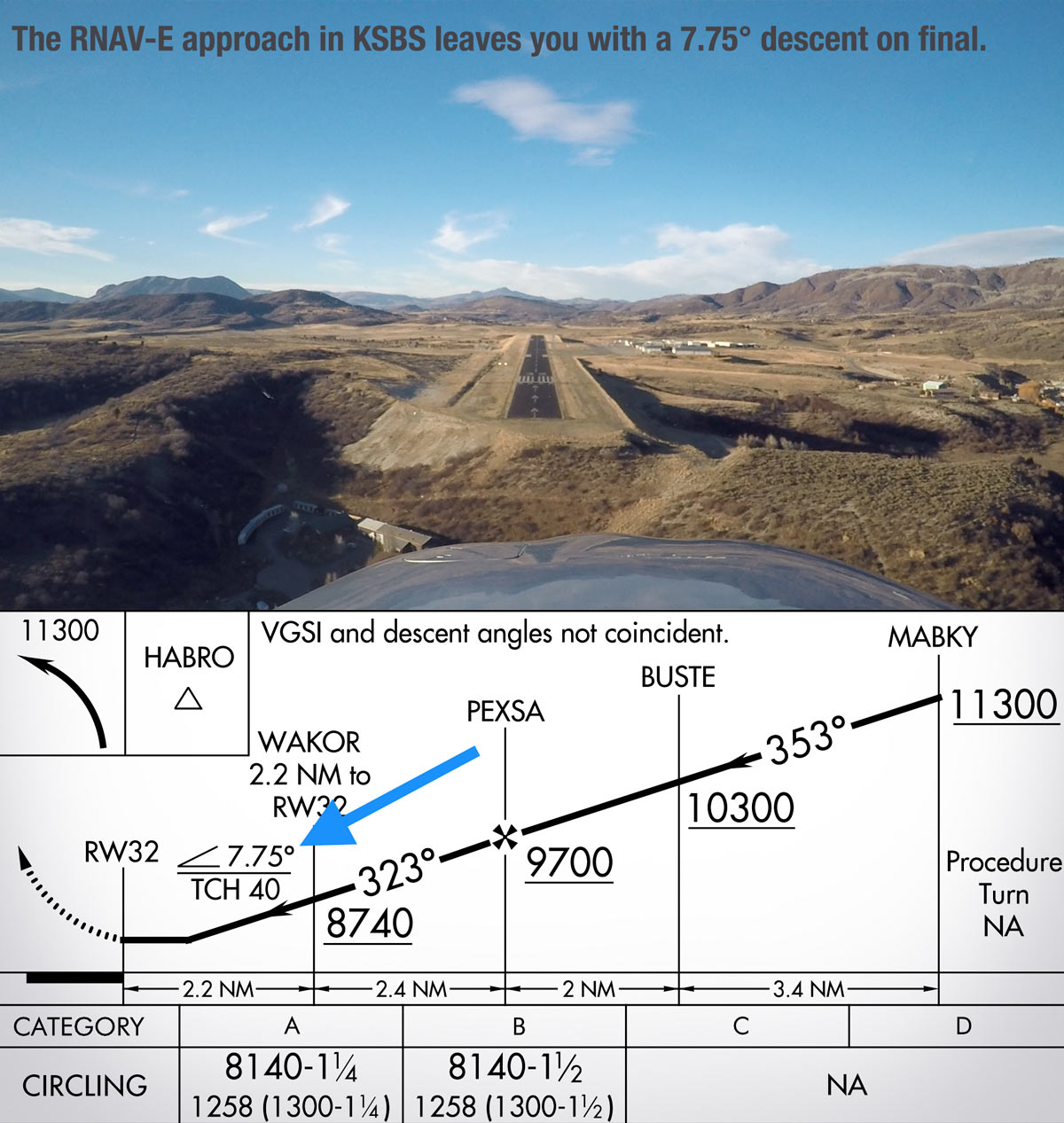 コロラド州スチームボートスプリングスでは、地形が隆起しているため、滑走路32の2灯式PAPIは4度に位置しています。