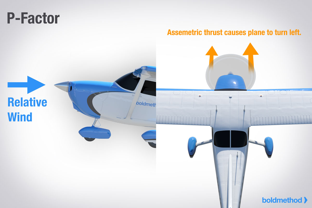 P-ファクターは、”非対称プロペラ負荷 “とも呼ばれ、下向きに動くプロペラブレードが上向きに動くブレードよりも大きく空気を “かむ “ときに起こります。