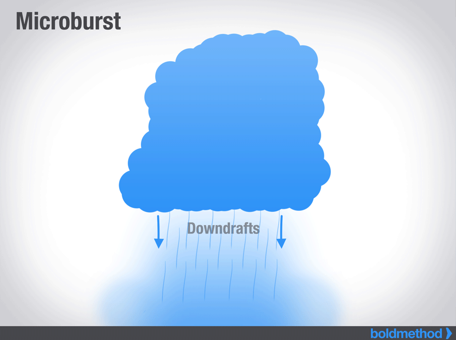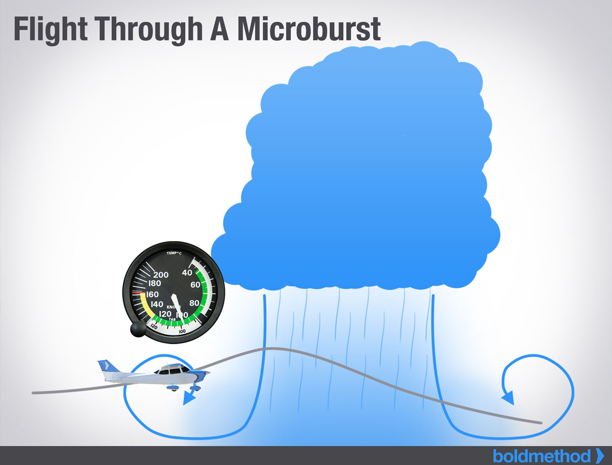 マイクロバーストは、ジェット機でさえも、あらゆる航空機を空から叩き落す力を持っている。今はまだ夏の対流気象の真っ最中であるため、アメリカ全土でその危険性が高まっている。