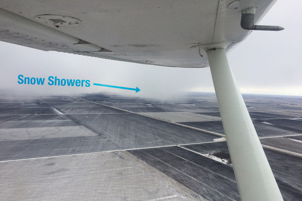 (風速12ノット、視程4マイル、雲底高度2,000フィートの曇天、軽い降雪、気温-7℃、露点-11℃、気圧30.20インチHg)
