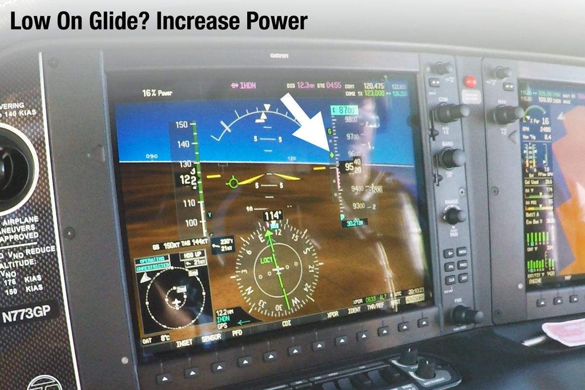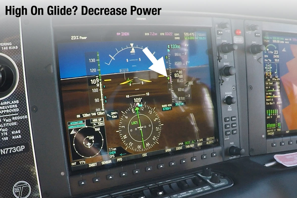 グライドスロープが高い。どのように修正しますか?ピッチダウンするのか、それともパワーを下げるのか?議論を始めたいのなら、パイロットのグループにどう思うか聞いてみるといい。パイロットは長年、対気速度にはピッチを、グライドスロープにはパワーを使うのがいいのか、それともその逆がいいのかを議論してきた。